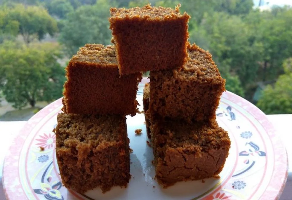 Mix the dry ingredients and sieve thrice so they well combined. Stir the jaggery in milk and filter to remove impurities. (If using sugar, skip this step.) Combine the curd, butter, oil and whisk well. Fold in the dry ingredients in batches. Bake at 180°C for 30 – 35 minutes in a preheated oven.