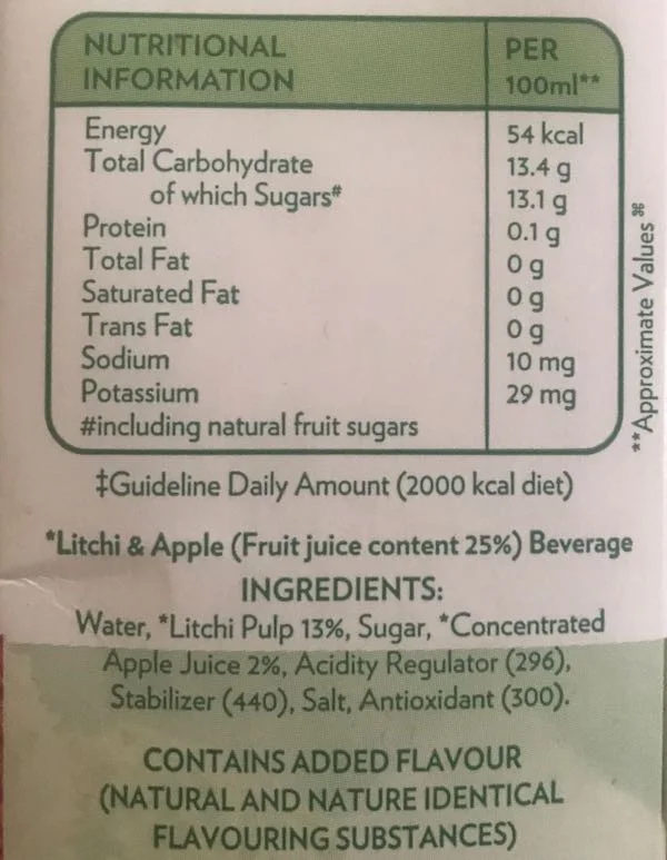 Real fruit: Packaged juices that say ‘Contain real fruit’ or ‘made with real fruits’ are rarely what their attractive packaging promises. Juice manufacturers are allowed to make these claims even if their products contain only a single grape. Real fruit juice may be one ingredients in the ‘Fruit Beverage’ but the product will also contain one or more artificial sweeteners, flavour enhancers often innocuously labelled ‘nature identical flavouring substances’ (meant to replace the taste lost during pasteurisation, processing and storage, acidity regulators, and preservatives. The actual fruit juice content is not more than 25 percent.